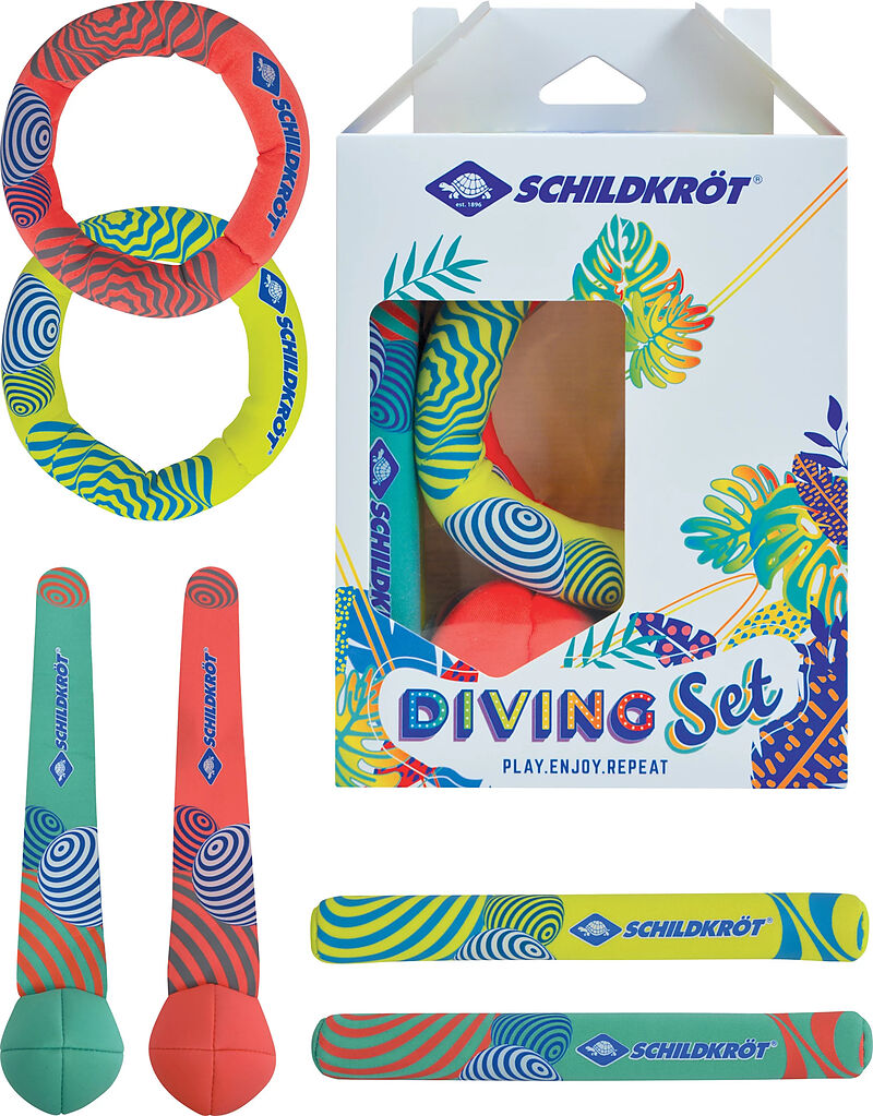 Schildkröt Funsports - NEOPREN DIVING SET 6-teilig, je 2 Ringe Das 6-teilige Neopren Tauchset ist seit Jahren ein Besteller unter den am Markt erhältlichen Tauchartikeln. Warum ist das so? Die Neopren Tauchartikel bestechen durch die Griffigkeit der textilen N...