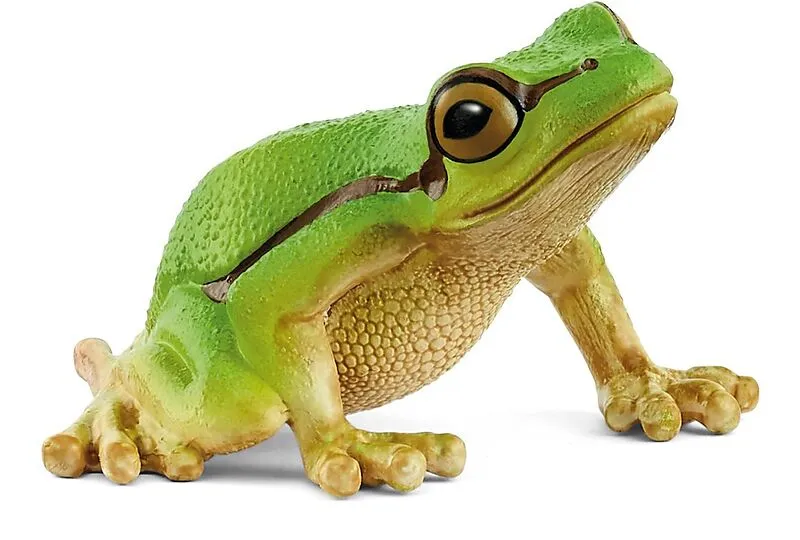 Der Europäische Laubfrosch wird nur drei bis vier Zentimeter groß. Obwohl er so klein ist, ist er nicht leicht zu übersehen. Er ist nämlich leuchtend grün. Nur der Bauch ist hellbraun bis cremefarben gefärbt. Von der flachen, breiten Schnauze am Auge vorbei üb...