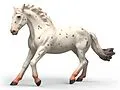 Die schöne Knabstrupper Stute mit der auffälligen Fellmusterung zieht alle Blicke auf sich. Besonders den Knabstrupper Wallach hat sie in ihren Bann gezogen. Das bekommt sie aber gar nicht mit. Sie ist ganz vertieft in ihren kraftvollen Galopp über die Weide. ...