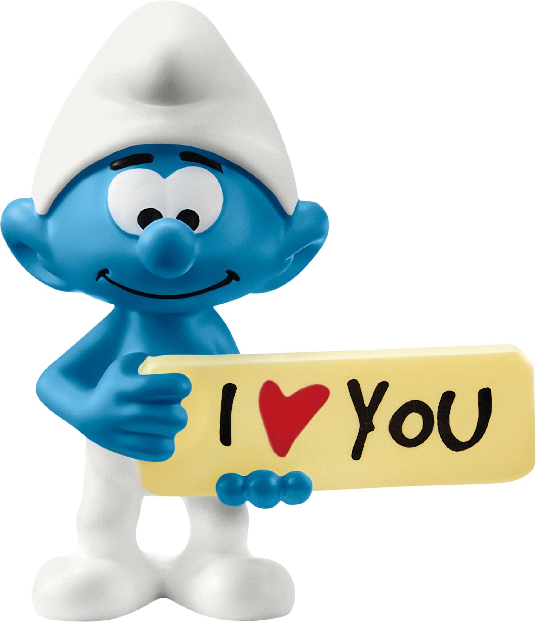 Ein Schlumpf sagt mehr als tausend Worte: I LOVE YOU! Wenn ein Schlumpf dich einmal in sein Herz geschlossen hat, lässt er dich nicht mehr raus! Der Schlumpf lächelt verträumt, als er dir sein Schild entgegenhält. Es zeigt dir auf besondere Weise wie sehr er d...