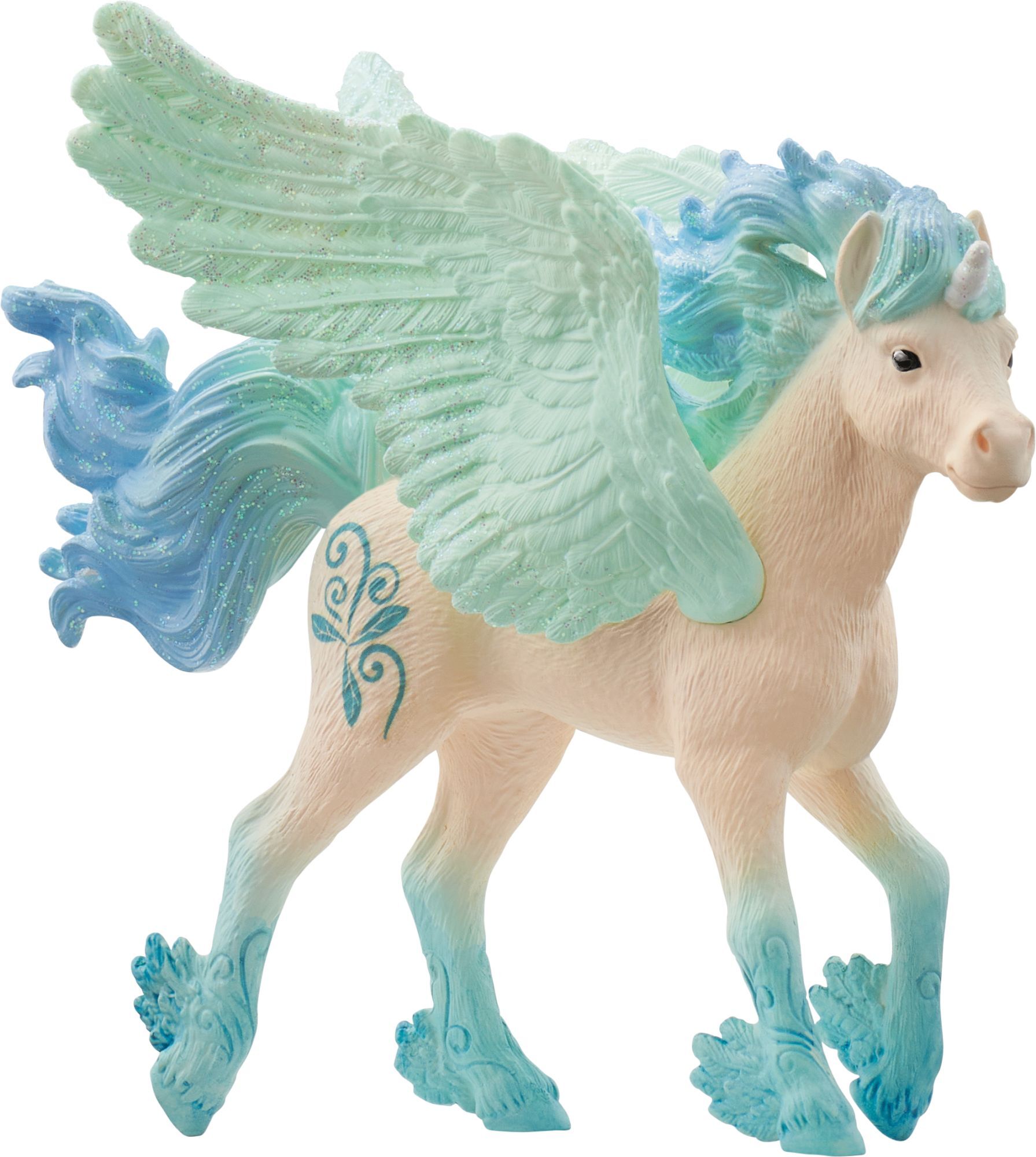 Dem Stormy Einhorn Fohlen sieht man an, dass es ein temperamentvoller Wirbelwind ist: Die blau-türkisfarbene Mähne und der dichte Glitzerschweif werden vom Wind zerzaust. Es breitet seine großen, hellblauen Flügel aus. Das helle Fell ziert ein hübsches Tattoo ...