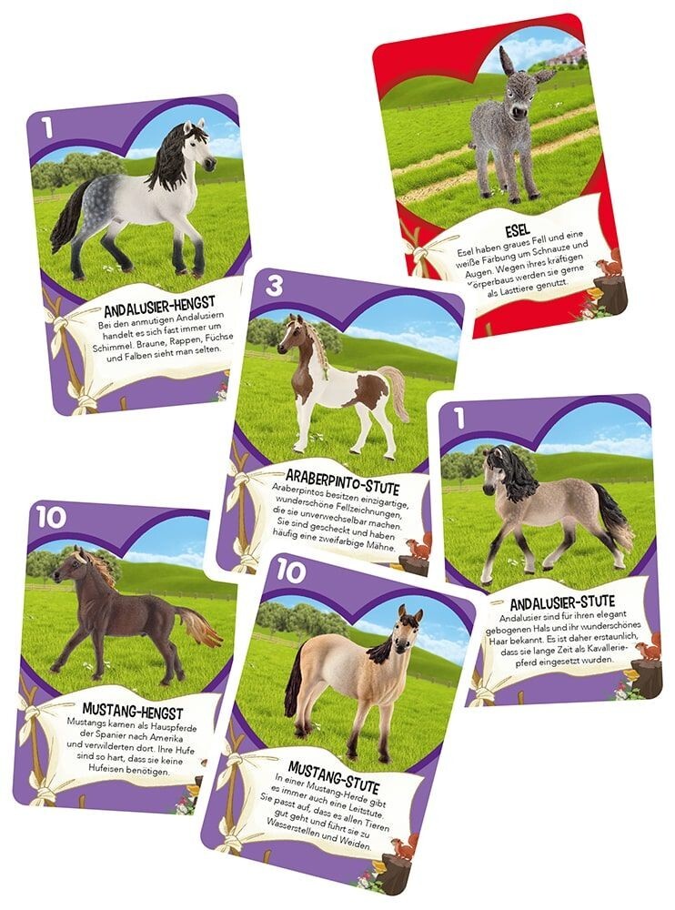 Karten ziehen, Paare finden - Schleich Pferdepaare inkl. Pferdeposter Bei diesem Spiel gilt es die passenden Karten vom Mitspieler zu ziehen und möglichst viele zusammengehörende Paare vor sich abzulegen. Wer hat am Schluss die meisten Pärchen zusammen und wer...