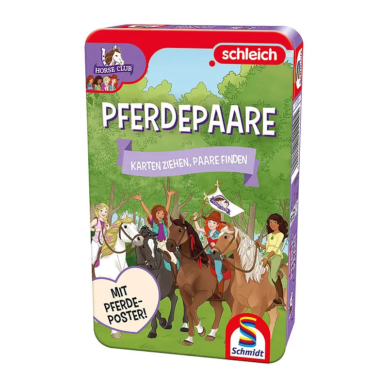 Karten ziehen, Paare finden - Schleich Pferdepaare inkl. Pferdeposter Bei diesem Spiel gilt es die passenden Karten vom Mitspieler zu ziehen und möglichst viele zusammengehörende Paare vor sich abzulegen. Wer hat am Schluss die meisten Pärchen zusammen und wer...