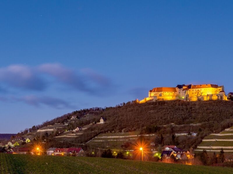 Schloss Neuenburg, eine historische Festungsanlage thront hoch über der Unstrut in Freyburg.