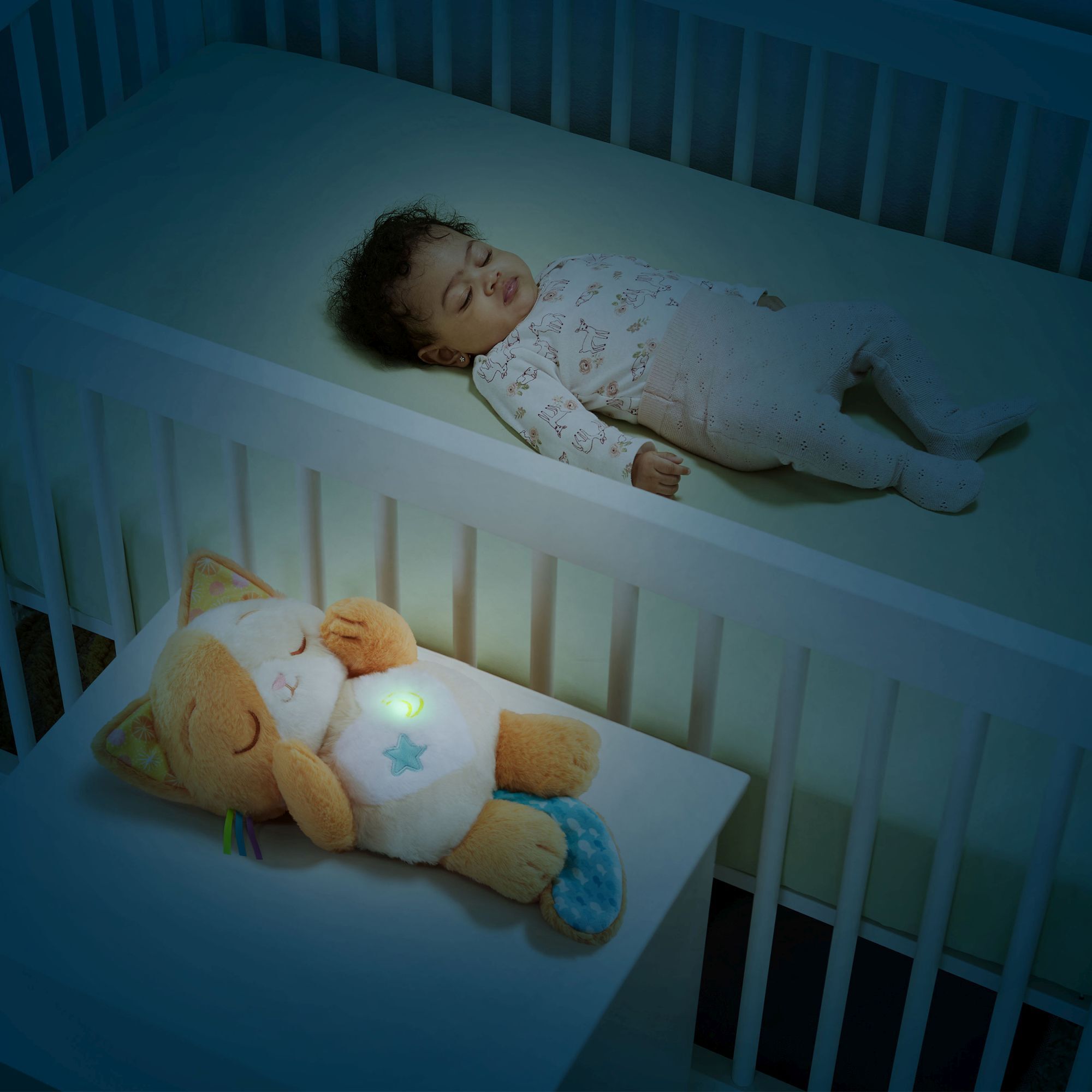 Schlummer-Kätzchen Niedliches Kätzchen, das zum Schlummern einlädt. Plüschkatze, die beruhigende Musik sowie Lieder abspielt und sich dabei sanft bewegt. 2 Modi: Hintergrundrauschen, Musik. Mondtaste: mit der leuchtenden Mondtaste aktiviert man 30 Minuten, wäh...