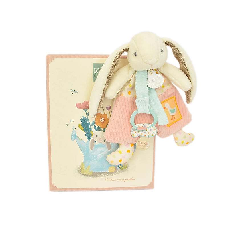 Der Schmusehase mit Schnullerhalter ist ein hübsches Kuscheltier. Dank dem Schnullerhalter ist der Schnuller immer in Griffnähe. Verpackt im dazu passenden Geschenkkarton. Maschinenwäsche bei 30° Grad. Grösse: 19cm.