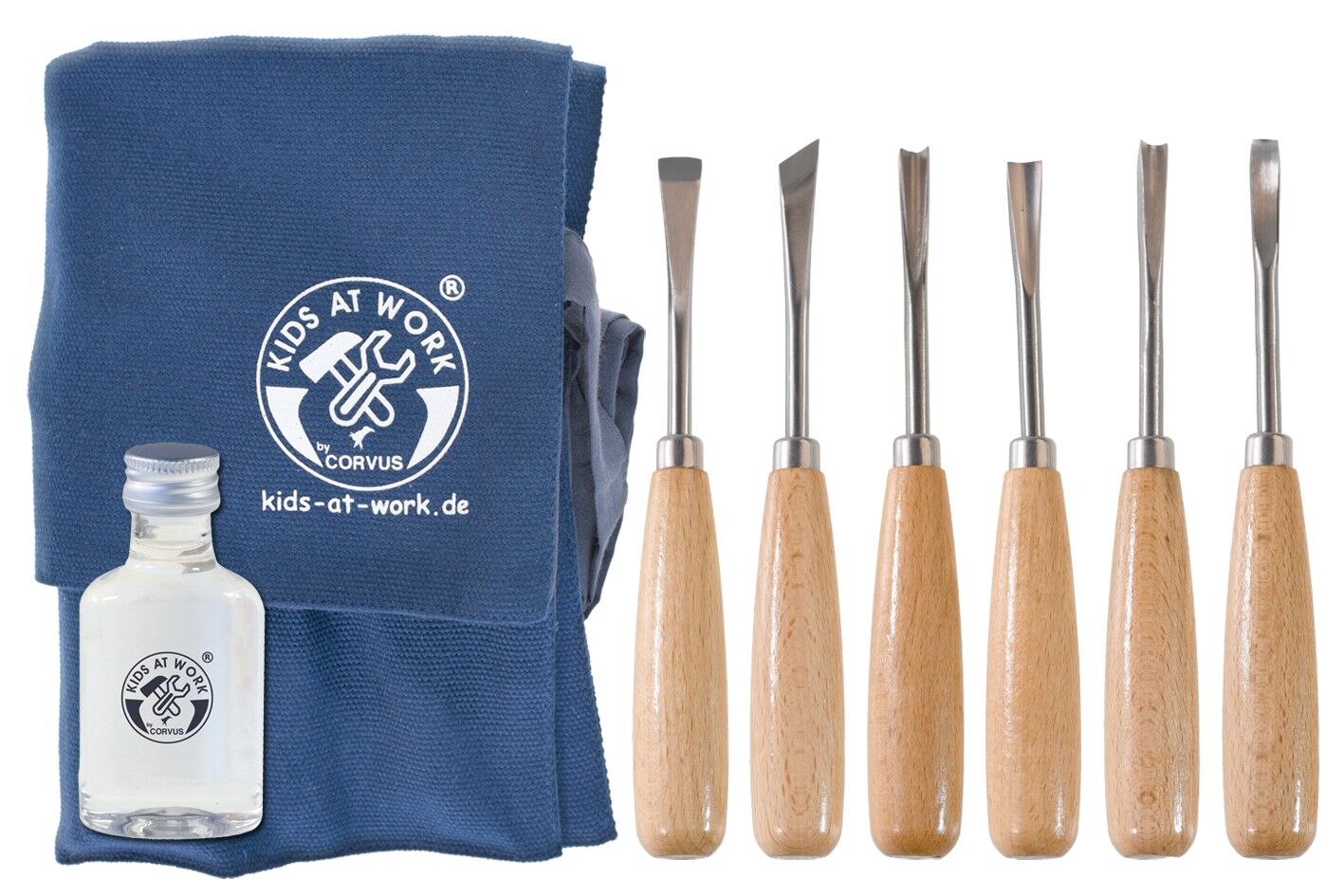 Corvus A600686 Schnitzwerkzeuge 6-tlg mit Baumwolltasche und Stahlpflegeöl.