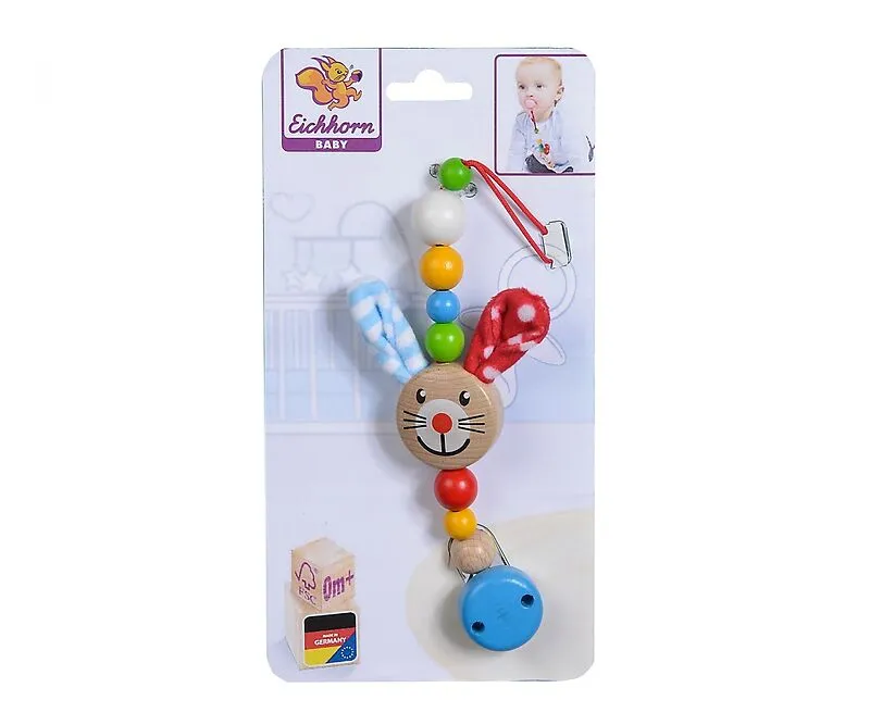 Damit der Schnuller nicht verloren geht, wird er an den süßen Schnullerhalter von Eichhorn gebunden. Er besteht aus vielen Formen und Farben mit einem kleinen Hasenkopf in der Mitte. Für Kinder bereits ab den ersten Lebensmonaten geeignet. zum Befestigen des S...