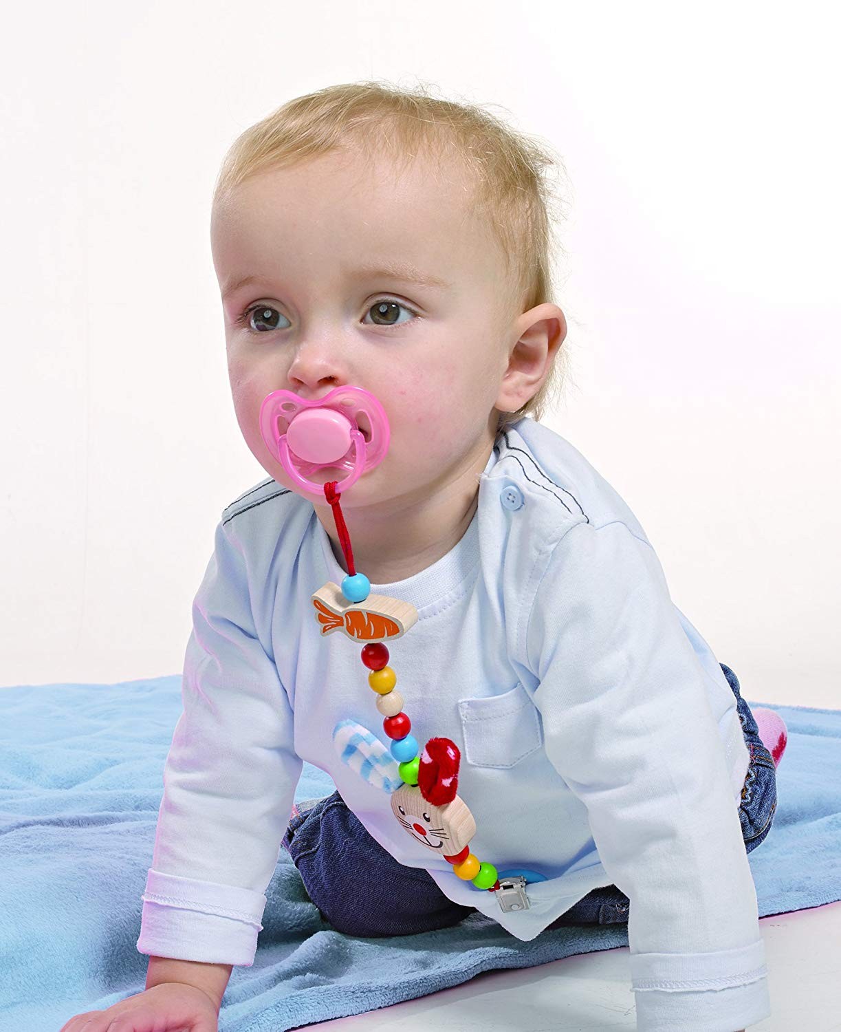 Damit der Schnuller nicht verloren geht, wird er an den süßen Schnullerhalter von Eichhorn gebunden. Er besteht aus vielen Formen und Farben mit einem kleinen Hasenkopf in der Mitte. Für Kinder bereits ab den ersten Lebensmonaten geeignet. zum Befestigen des S...