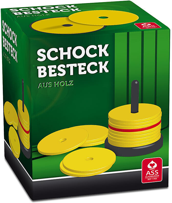 Schockbesteck - Jule - Knobeln - Jule - Maxen - Schocken - Knobelturm - Mörkeln - Maiern Hochwertiges Schockbesteck aus Holz mit 14 Holzscheiben und 1 Aufnahme-Dorn aus Holz