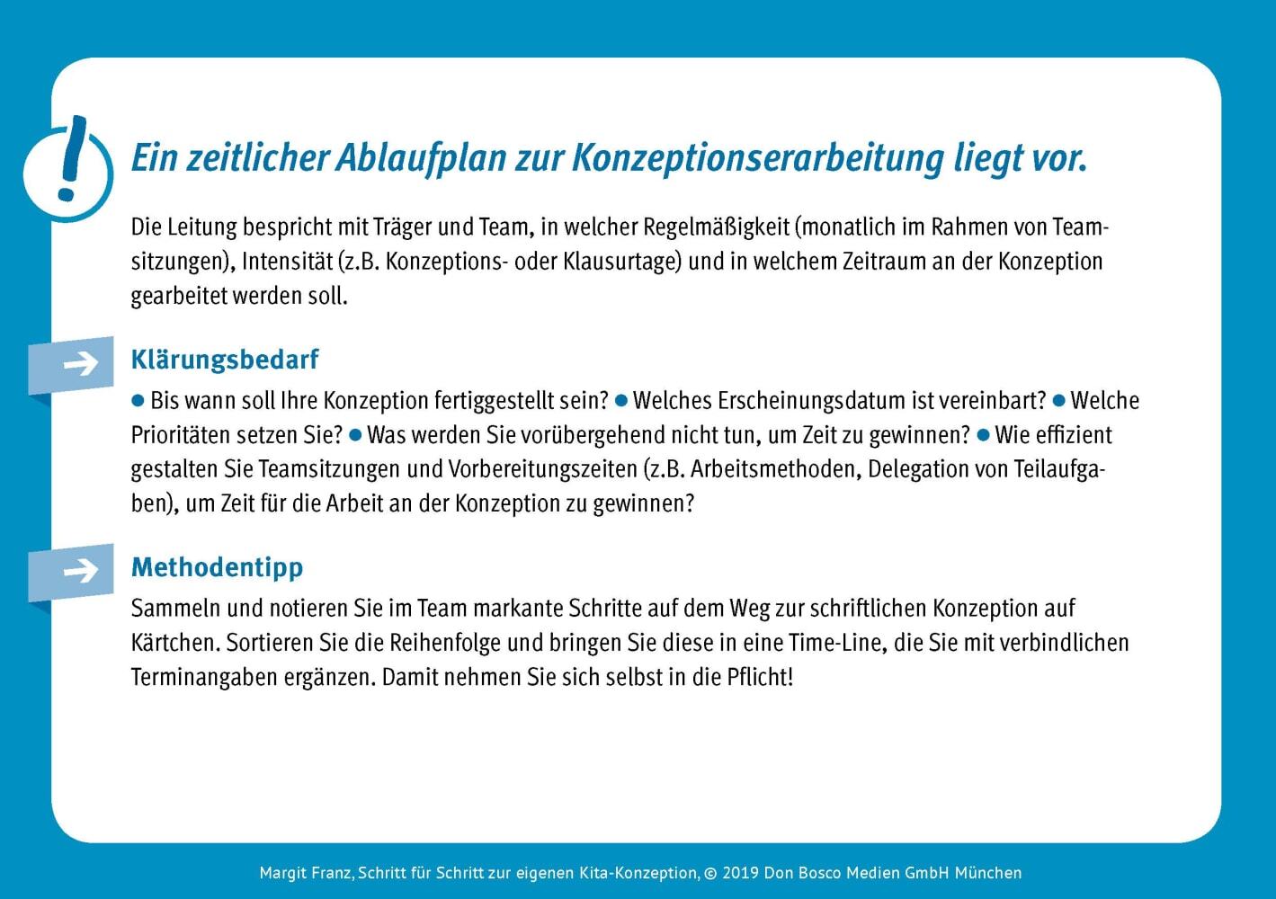 Kita-Konzeption leicht gemacht: 55 Leitfragen im praktischen Moderationskarten-Format zur Entwicklung oder Aktualisierung der Konzeption im Team. DIN A5, 55 Karten, beidseitig bedruckt, auf festem 300g-Karton, folienkaschiert, farbig illustriert, inkl. method....