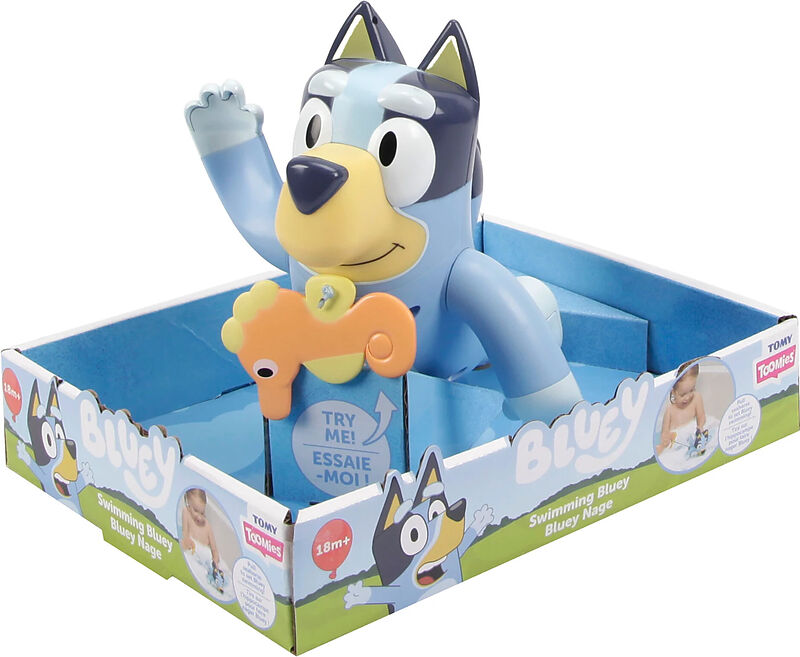 Es ist Badezeit, lass uns mit Bluey baden gehen! Zieh an ihrem Seepferdchen und sieh Bluey zu, wie sie durch die Badewanne paddelt! Bluey kann auch auf dem Rücken schwimmen