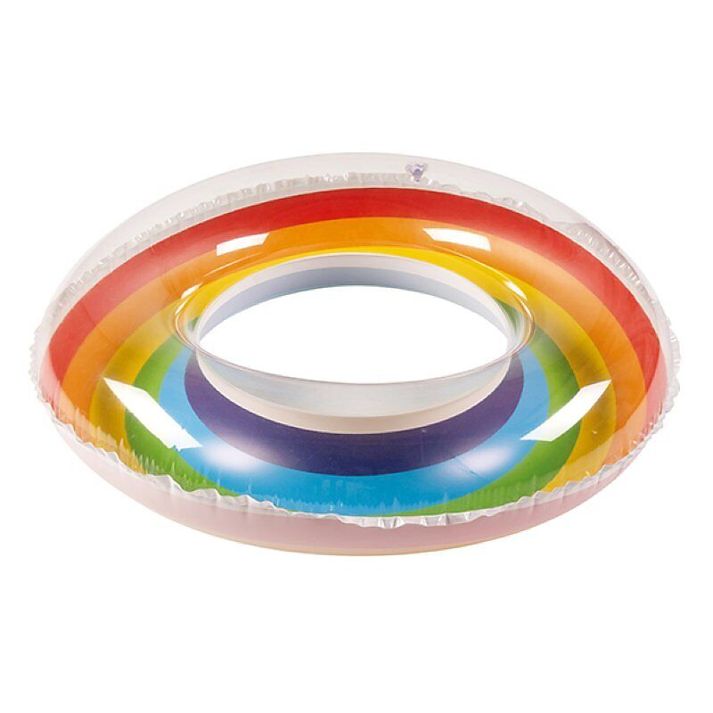 Schwimmring Rainbow, aufgeblasen ca. 77cm, unaufgeblasen ca. 90cm, Oberseite transparent, Unterseite innen mit Regenbogenfarben.