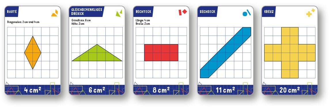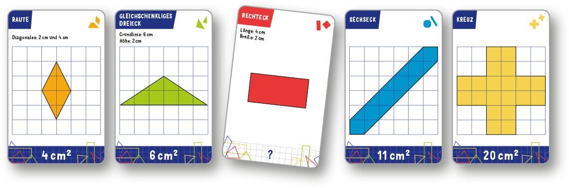 Gut geschätzt ist halb gewonnen! Größer oder kleiner? Das ist hier die Frage! Bei diesem Kartenspiel kommt es darauf an, die Fläche von geometrischen Formen abzuschätzen und in einer Reihe von Karten richtig einzuordnen. Das Spiel ist perfekt für die ganze Fa...
