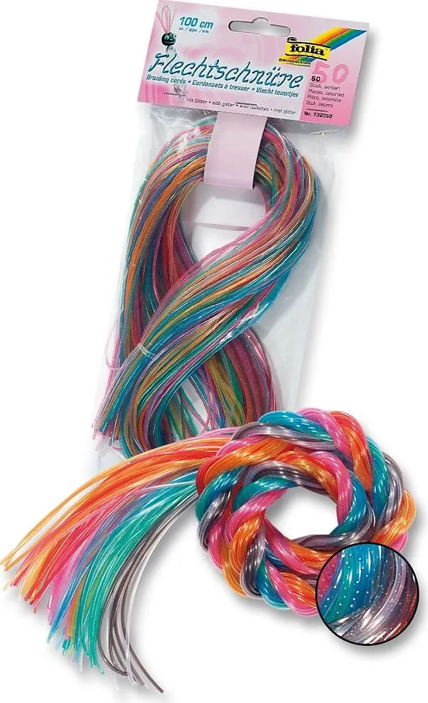Flechtschnüre in 10 gängige Farben sortiert 50 Schnüre transparent mit Glitter