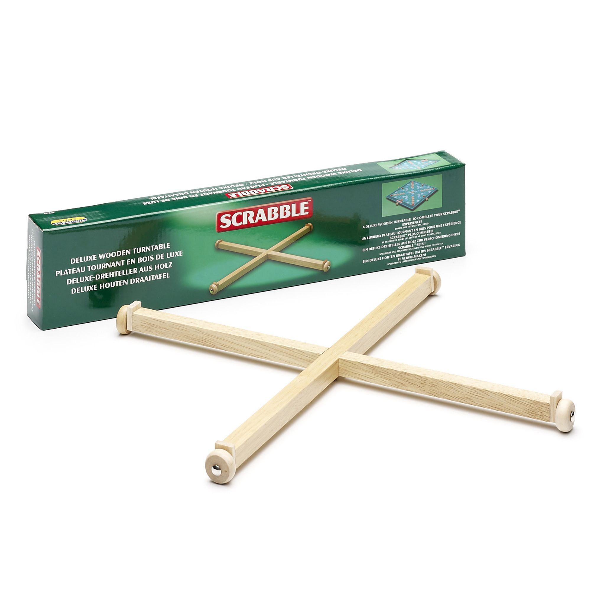 Der Deluxe Drehteller aus Holz zur Ablage des Spielbretts für alle gängigen Scrabble-Spiele