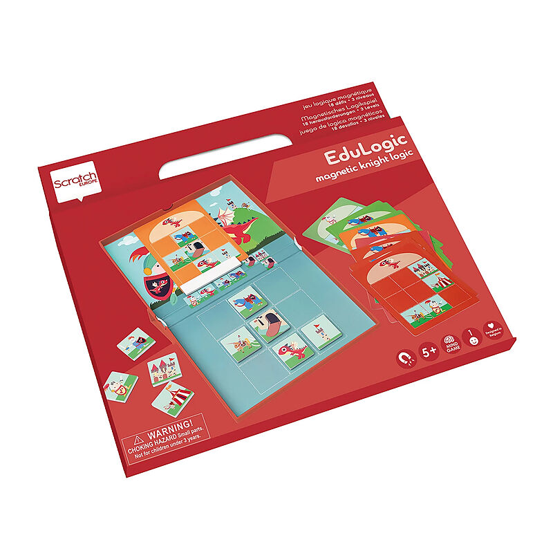 Kannst du das Bild mit Rittern, Drachen und Schlössern vervollständigen, indem du die fehlenden Figuren hinzufügst? Achtung: Die Figuren in der Schachtel müssen immer richtig zusammengesetzt werden! Es gibt 18 verschiedene Aufgabenkarten. Nimm eine Aufgabenkar...