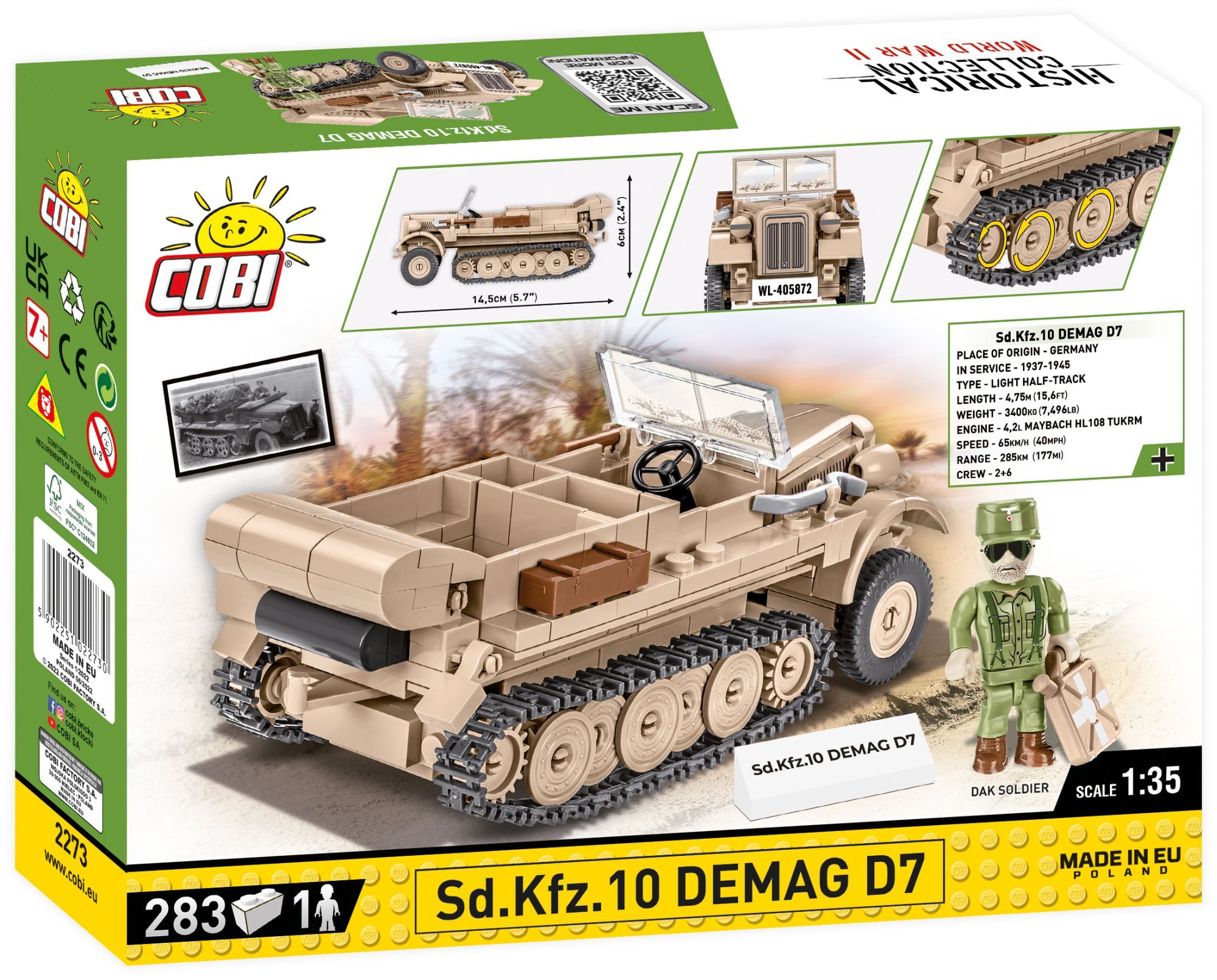 Cobi 2273 Sd.Kfz 10 Demag D7 ''COBI-2273 Sd.Kfz.10 DEMAG D7 Historical Collection WORLD WAR II 280 bricks 1 figure Age group 8+ Scale 1:35 Sd.Kfz.10 DEMAG D7 was a light, half-track artillery tractor produced in 1937-1945 for the needs of the German army. The ...