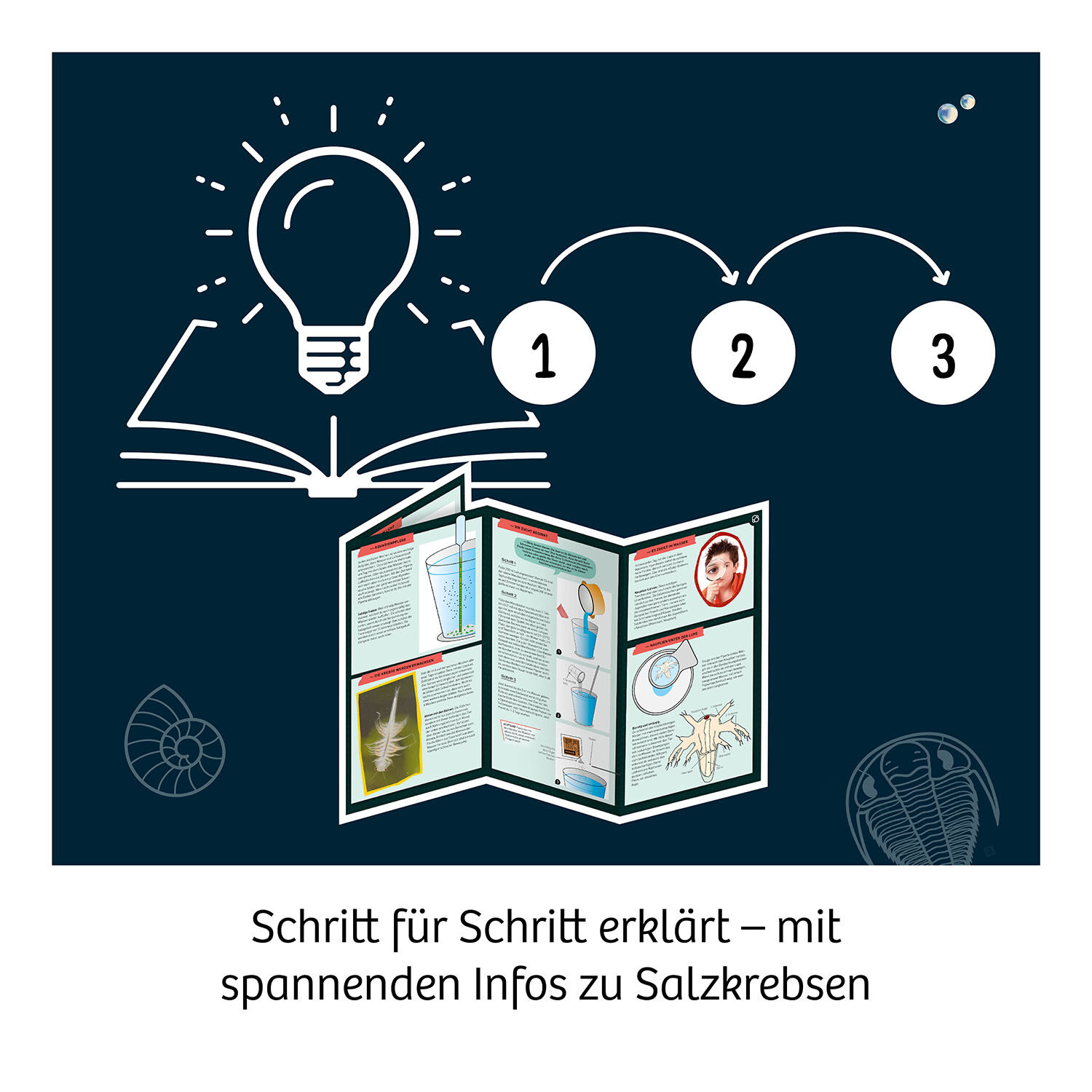 Cool! Jetzt ziehen Urzeitkrebse aus der Zeit der Dinosaurier ins Kinderzimmer ein. Das spannende Anzuchtset ermöglicht Kindern die Entwicklung vom Ei bis hin zu lustig wuselnden Urzeit-Krebsen mitzuerleben. Eine Lupe hilft dabei, nichts zu verpassen. Mit den i...