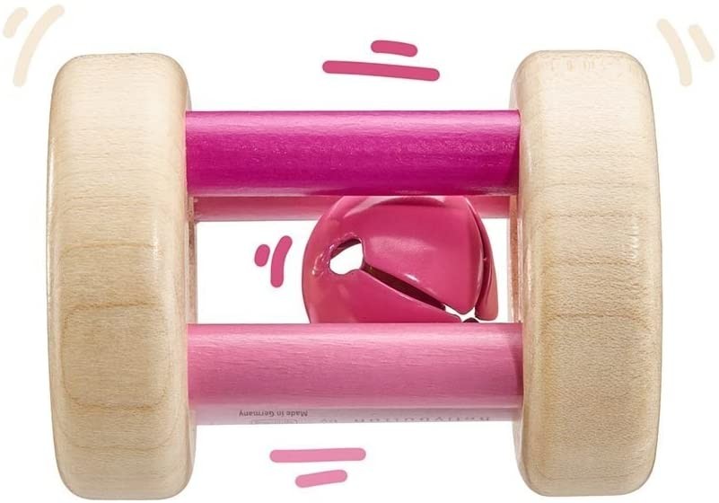 Rollende Holzrassel mit Glöckchen. Da ist Musik drin! Im Glöckchenkäfig bimmelts kräftig beim Rollen: ein rundum begeisternder Greifling, der Baby lange begleiten wird. - Ein Greifling zum Tasten, Fühlen, Schmecken, Hören, Sehen und Be-Greifen. - Liebevolle Ha...