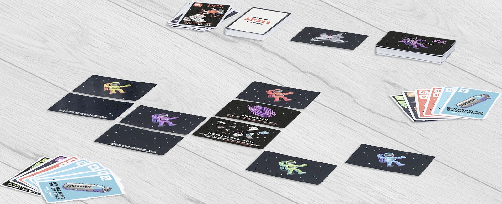 Wem geht beim Spielen die Luft aus? Spannendes, strategisches Kartenspiel ab 10 Jahren für Weltallfans und Astronauten Du und deine Freunde schwebt einsam und verlassen in den gefährlichen Tiefen des Weltraums umher und langsam geht euch der Sauerstoff aus. I...