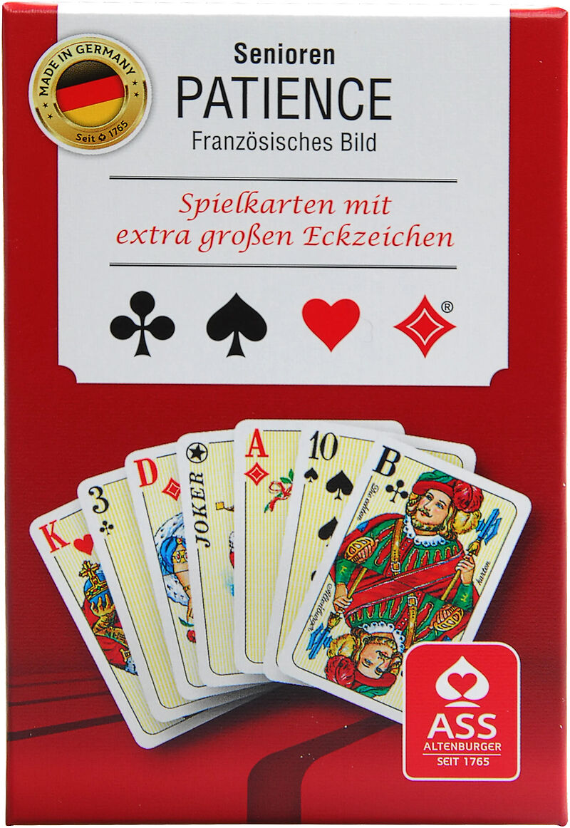 Senioren Patience mit extra großen Eckzeichen Kartenformat: 43,5 x 67,5 mmInhalt: 2 X 55 Spielkarten