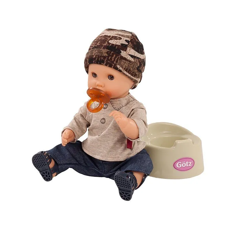 Ganz cool möchte der Kleine sein, daher trägt er zu seinem Lieblingsshirt mit aufgedruckten Knöpfen und Kragen, eine Jeans und die Mütze im Camouflage-Muster. Das findet er besonders lässig. Selbst sein Töpfchen muss zum Outfit passen, ganz schön eitel der kle...