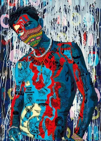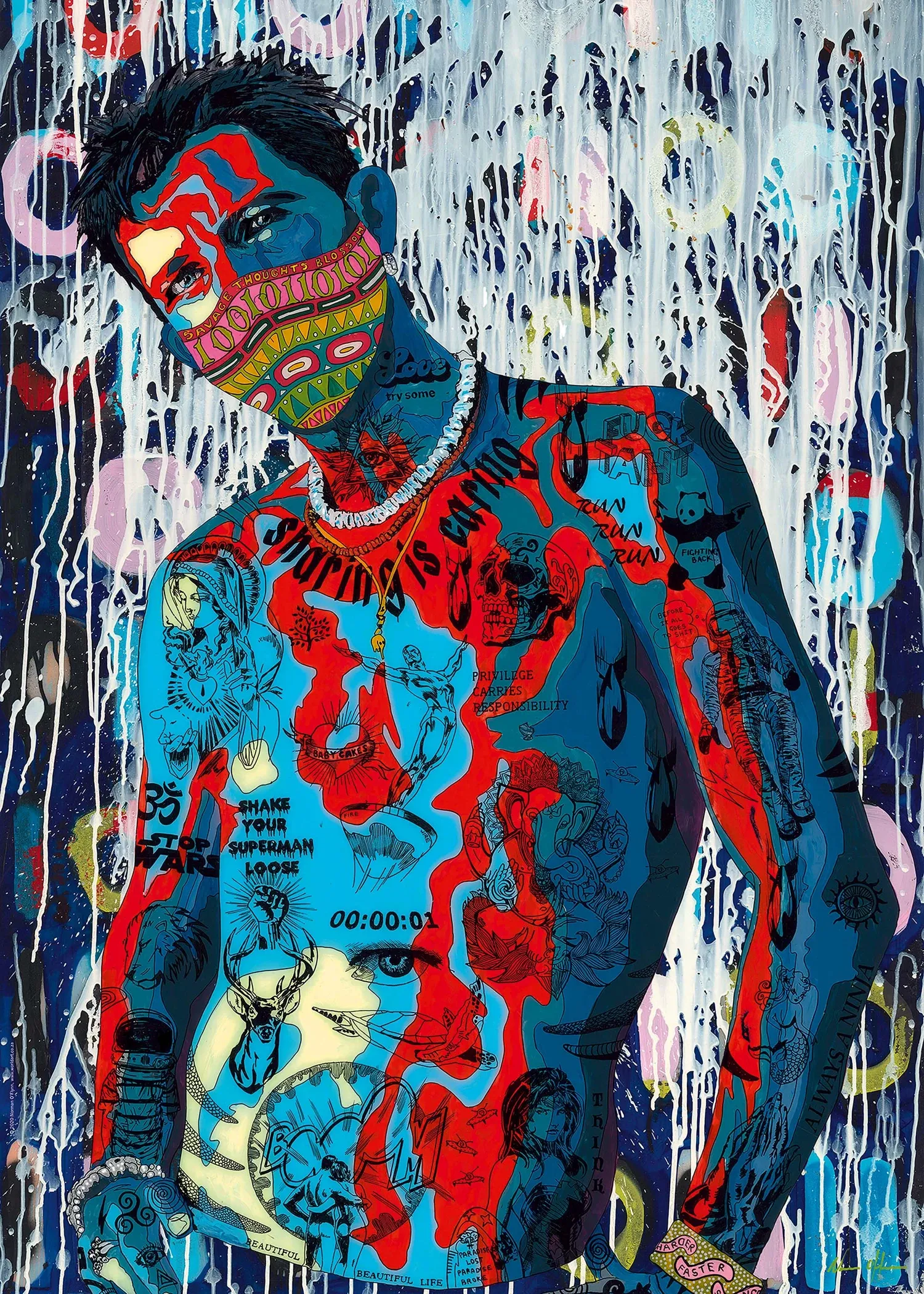 Der Blick des Künstlers auf die aktuellen Trends und der seines Models auf die Betrachter - beides sehr hintergründig und nachdenklich, aber auch sensationell cool. Gelegte Größe: 50x70 cm.