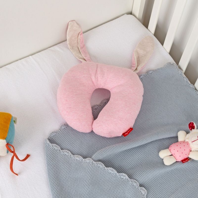 sigikid yellow the sunshine collection steht für eine moderne und harmonische Farbzusammenstellung. Die Kollektion ist typisch sigikid: positiv und voller Lebensfreude! Das rosafarbene etwa 25x24x6 cm große Nackenkissen Hase gibt Halt für das Köpfchen von Baby...