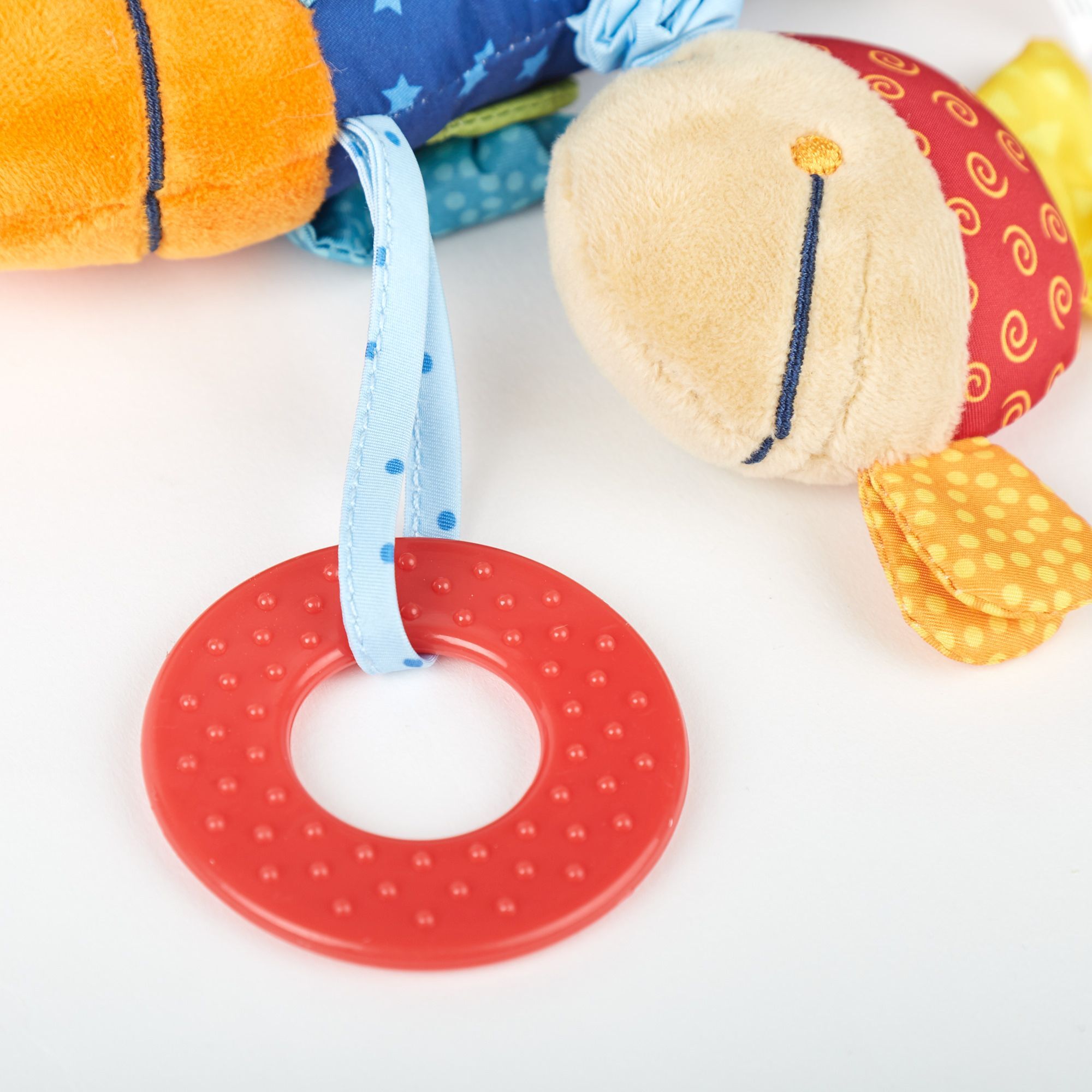 Spielen, Entdecken und Lernen: Der fröhliche Aktivfisch bereitet Babys großen Spaß. Funktionen wie Beißring oder Vibrationsrassel wecken Interesse. Geräusche von Rassel, Quietsche und Knisterfolie trainieren das Gehör.
