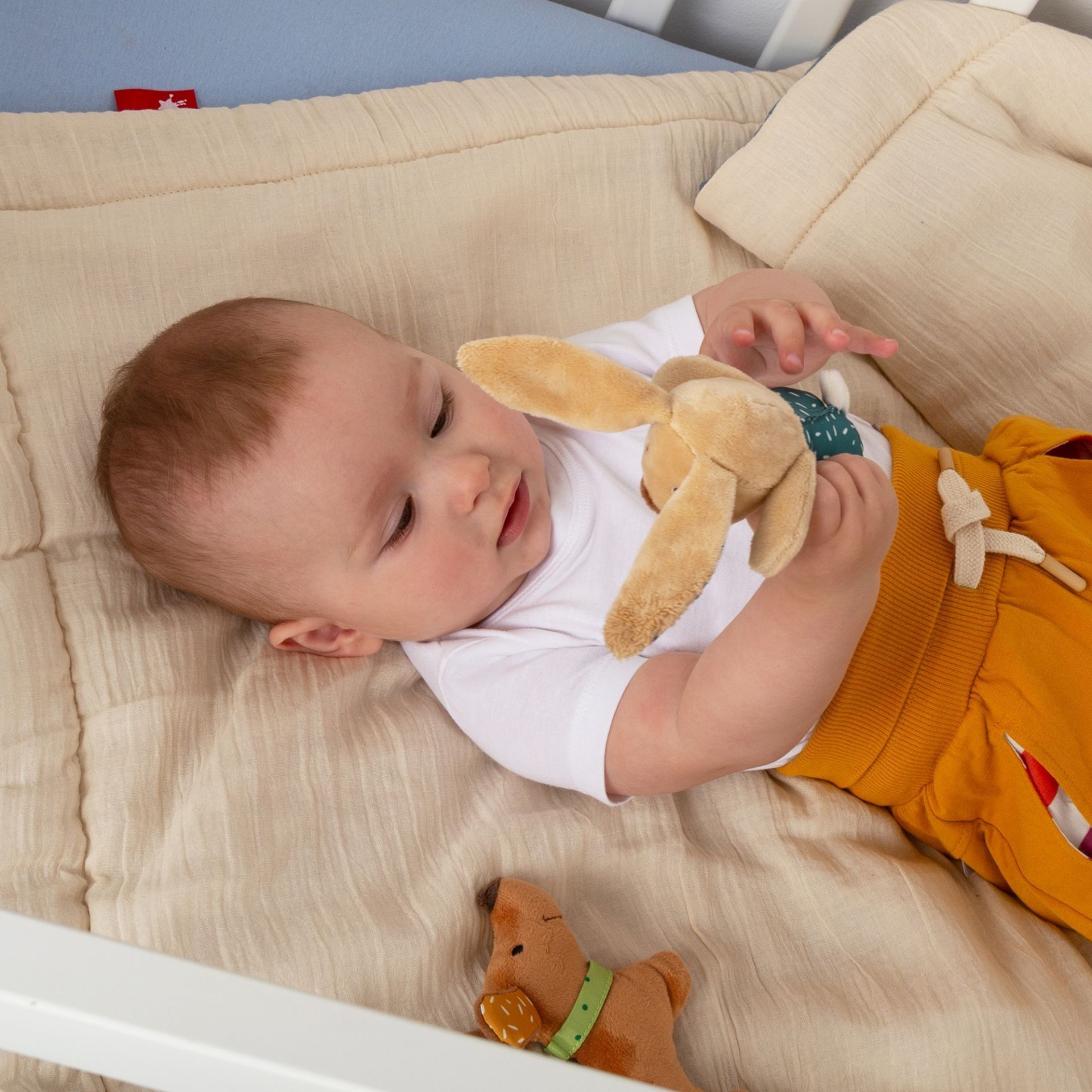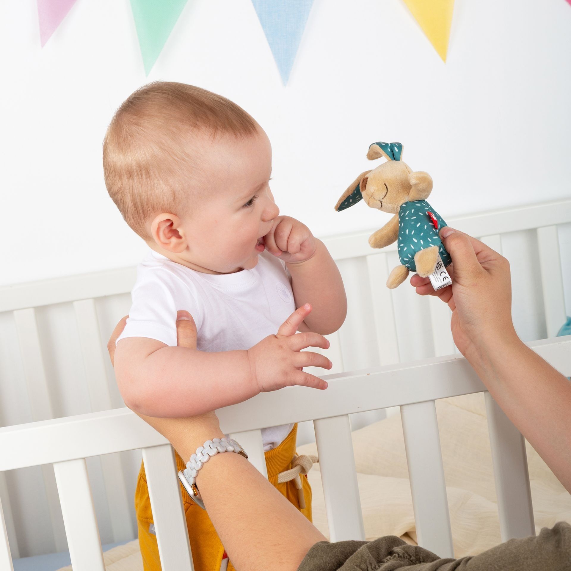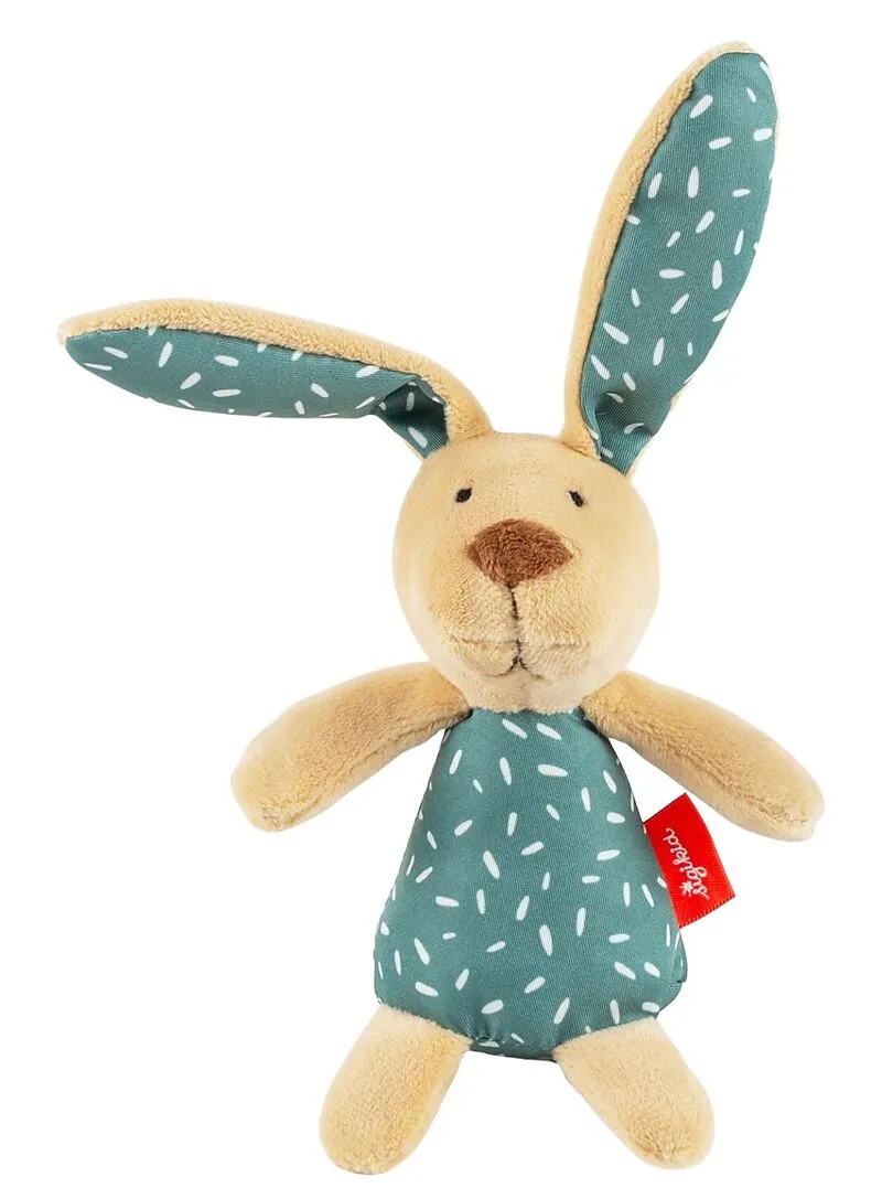 Baby Rassel-Greifling Hase Maße: 12 x 23 cm - Material: 100 % Polyester - Weich gefüllt mit 100 % Polyesterwatte - Rassel im Inneren - Augen & Mund gestickt - Altersempfehlung: 3 - 24 Monate - Maschinenwaschbar bei 30C Feinwäsche; bitte keinen Weichspüler verw...