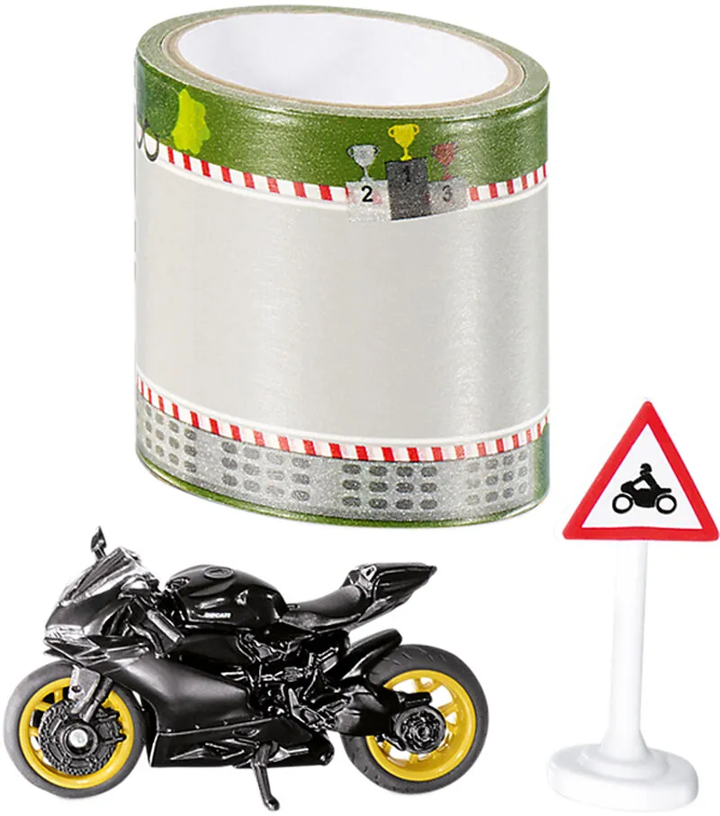Speed up your Ducati! Was für ein Auftritt: Die Ducati Panigale 1299 in mattschwarzer Lackierung und mit goldenen Felgen. Fast zu schön, um das Super-Bike auszufahren. Doch wer kann widerstehen, wenn sich wie bei siku eine Rennstrecke so einfach entrollen läss...