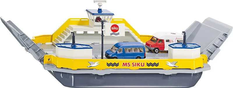 SIKU 1750 Autofähre 1:50 Schwimmfähige Autofähre im Maßstab 1:50 zum Transport von bis zu 6 Spielzeugautos oder 2 LKWs - Umfangreiche Funktionen: Aufklappbare Rampen, Beweglich auch an Land dank Kugelfahrwerk, Öffenbare Türen - Langanhaltender Spielspaß durch ...
