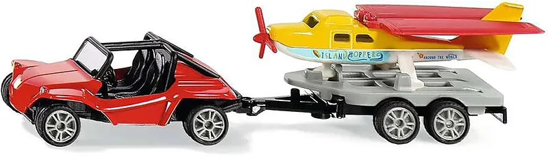 SIKU 1696 Buggy mit Sportflugzeug Detailliertes Spielzeugmodell eines Buggy mit Anhänger und Sportflugzeug zum Spielen und Sammeln, Für kleine und große Fans von Flugzeugen - Robustes und stabiles Design dank Metallkarosserie, Buggy mit Bereifung aus Gummi, Üb...