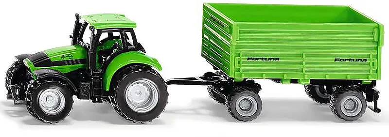SIKU 1606 DEUTZ-FAHR mit Fortuna 2-Achs Anhänger Detailliertes Spielzeugmodell eines Deutz-Fahr Agrotron 265-Traktors mit Anhänger von Fortuna zum Spielen und Sammeln, Für kleine und große Landwirtschafts-Fans - Robustes und stabiles Design dank Metallkarosser...