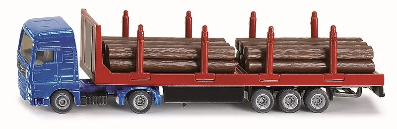 SIKU 1659 Holz-Transport-LKW 1:87 Originalgetreue Nachbildung eines Holz-Transport-LKW mit MAN-Sattelzugmaschine zum Spielen und Kombinieren mit weiteren SIKU Spielzeugen - Umfangreiche Funktionen: Entfernbare seitliche Rungen, Abkoppelbarer Auflieger, Sehr gu...