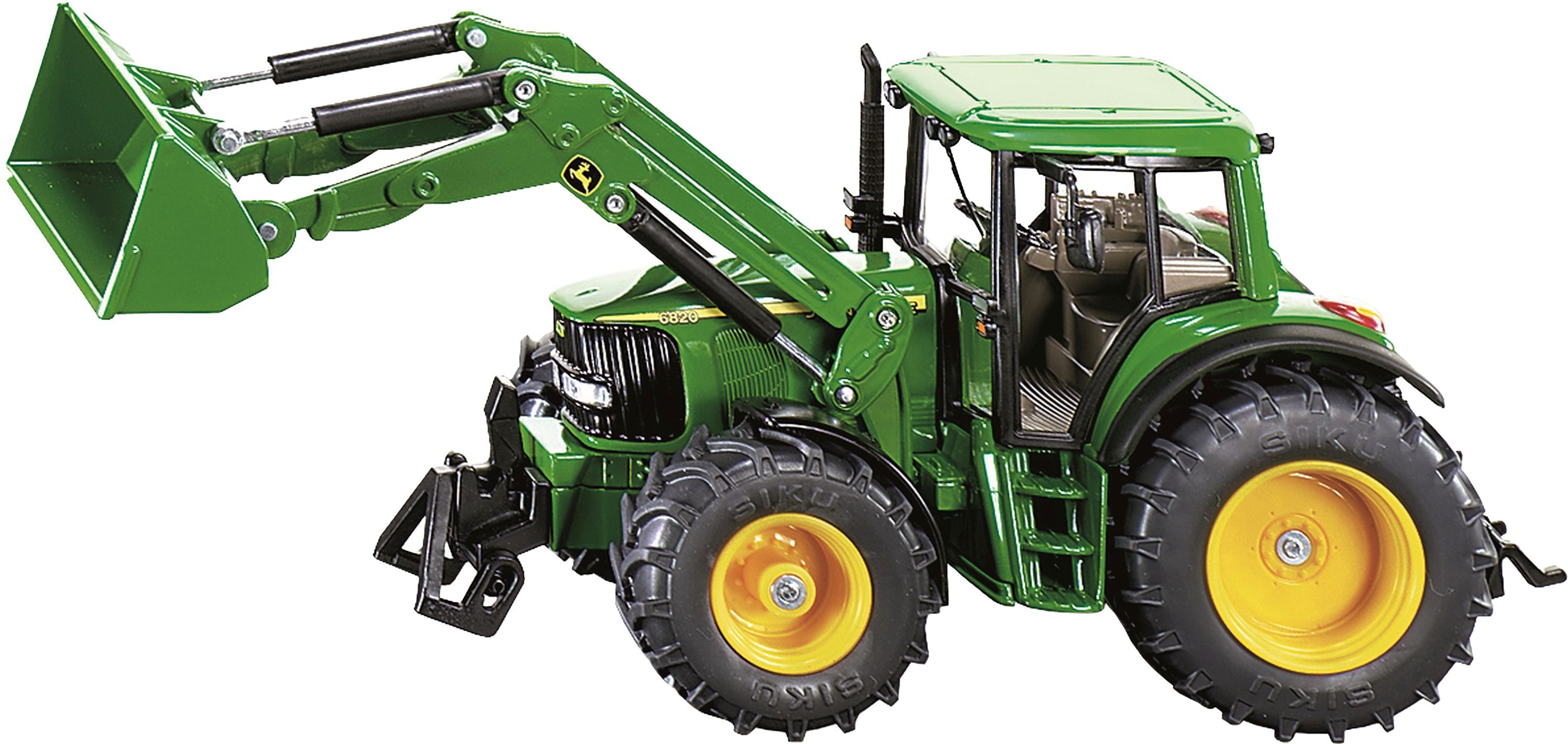 SIKU 3652 Farmer John Deere mit Frontlader 1:32 Detailgetreuer John Deere Traktor mit beweglichem Frontlader zum Spielen und Spaß haben für Groß und Klein - Robust und stabil dank Konstruktion aus Metall, Beweglicher Frontlader, Wechselbare Aufsätze für Frontl...