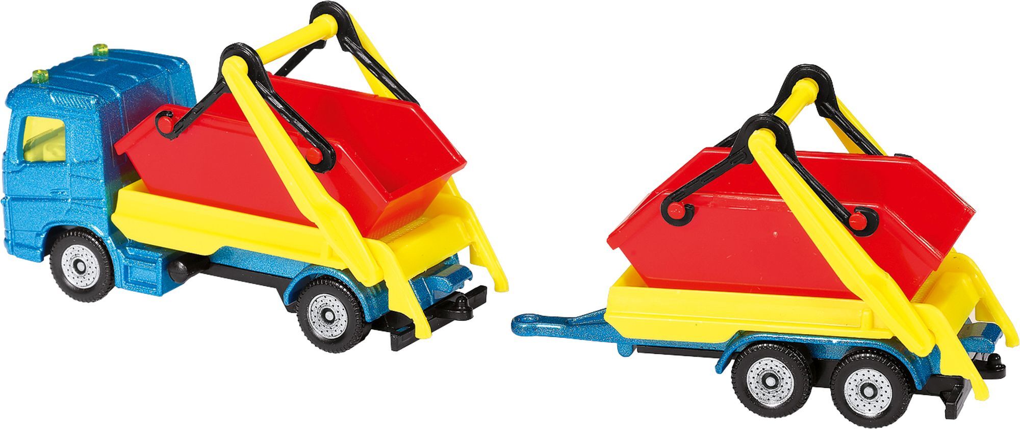 SIKU 1695 LKW mit Absetzmulde und Anhänger Detailliertes Spielzeugmodell eines LKW mit Absetzmulde, Anhänger und Containern zum Spielen und Sammeln, Für kleine und große Baustellen-Fans - Robustes und stabiles Design dank Metallkarosserie, Bereifung aus solide...