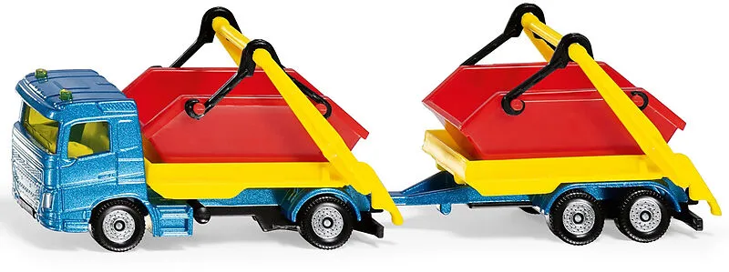 SIKU 1695 LKW mit Absetzmulde und Anhänger Detailliertes Spielzeugmodell eines LKW mit Absetzmulde, Anhänger und Containern zum Spielen und Sammeln, Für kleine und große Baustellen-Fans - Robustes und stabiles Design dank Metallkarosserie, Bereifung aus solide...