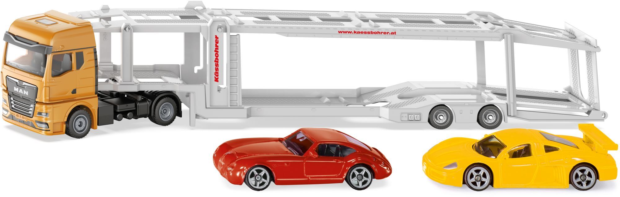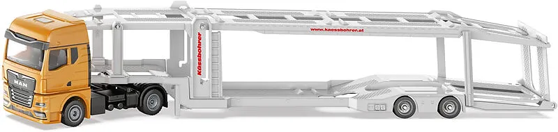 SIKU 3944 MAN Autotransporter MAN Autotransporter Endlich rollt der schwere Truck auf dem Autohof ein - er wird schon sehnlichst erwartet! Auf seiner Duplex-Ladefläche reihen sich die brandneuen Pkw, die jetzt von den neuen Besitzern in Augenschein genommen we...