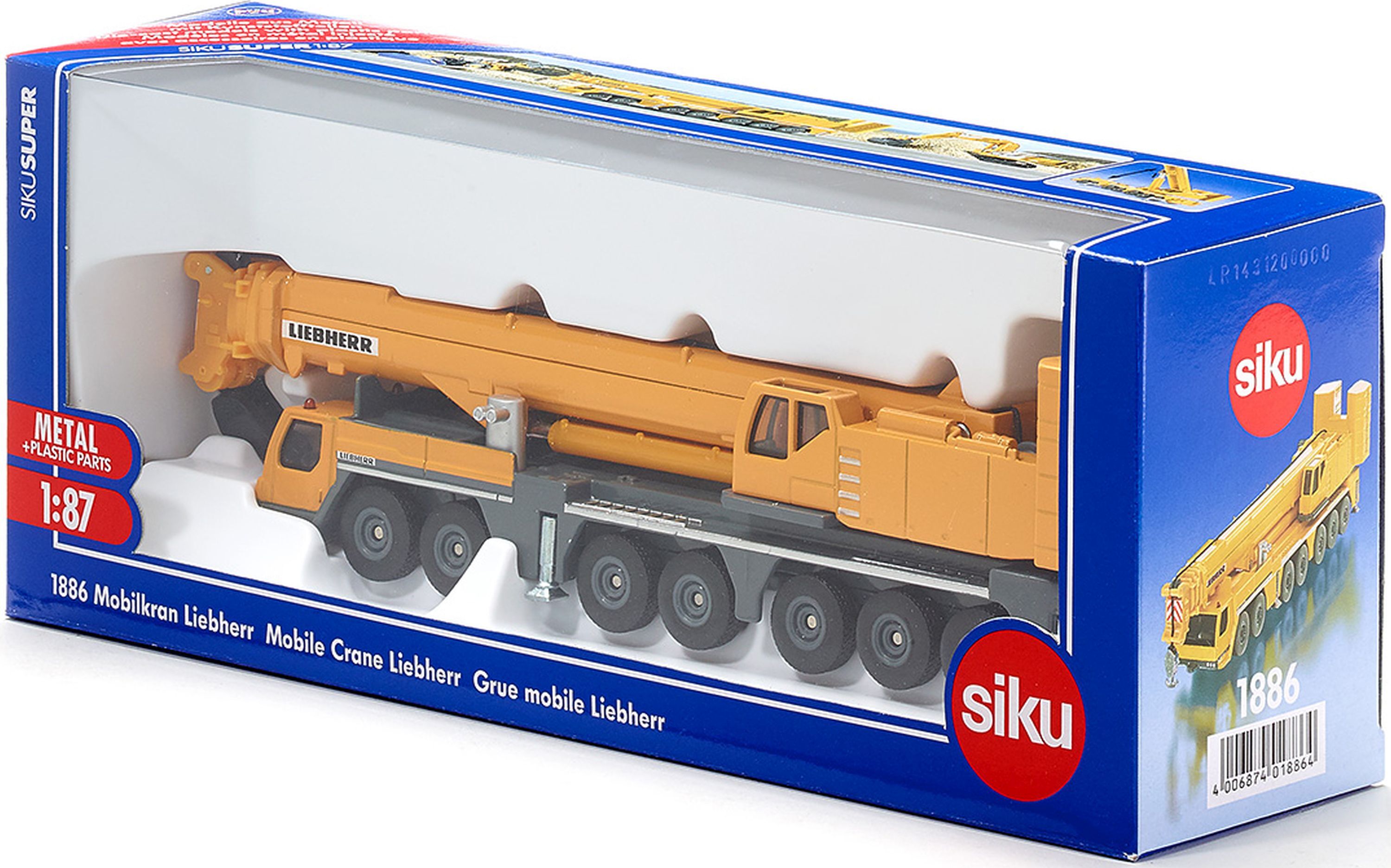 SIKU 1886 Mobilkran Liebherr 1:87 Detaillierter Mobilkran in originalgetreuer Optik mit ausziehbarem Kranarm zum spielerischen Anheben von Gegenständen - Umfangreiche Funktionen: Ausfahrbare Stützen, Funktionierende Seilwinde, Vollständig drehbares Maschinenha...