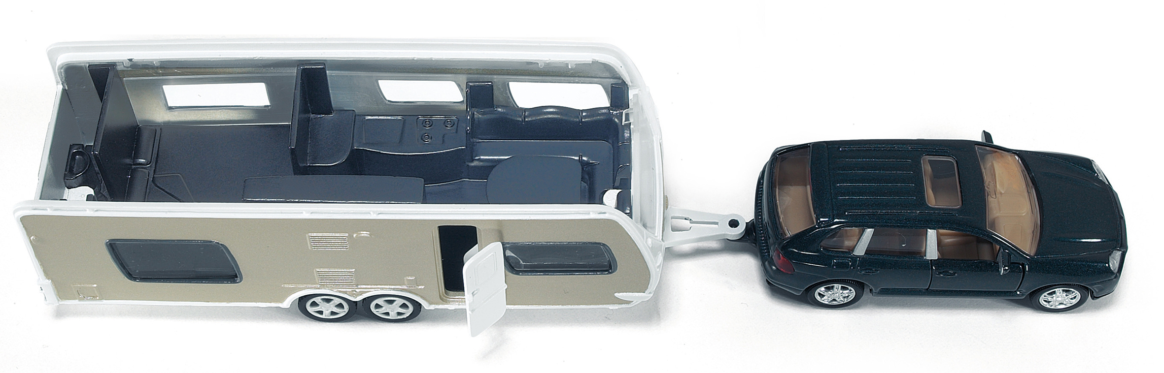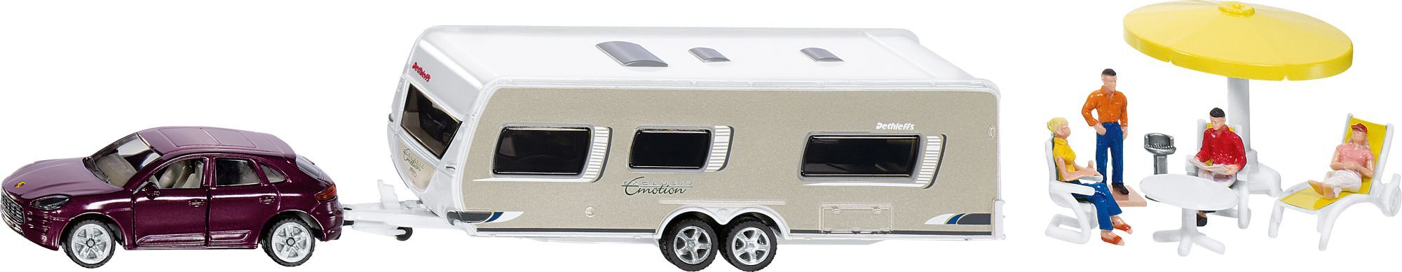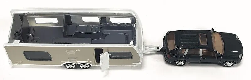 SIKU 2542 PKW mit Wohnwagen 1:55 Detaillierter Kombination aus Porsche Macan und Dethleffs Wohnwagen zum Spielen und Sammeln - Umfangreiche Funktionen: Abkoppelbarer Anhänger, Abnehmbares Dach vom Wohnwagen, Öffenbare Türen - Langanhaltender Spielspaß durch Na...