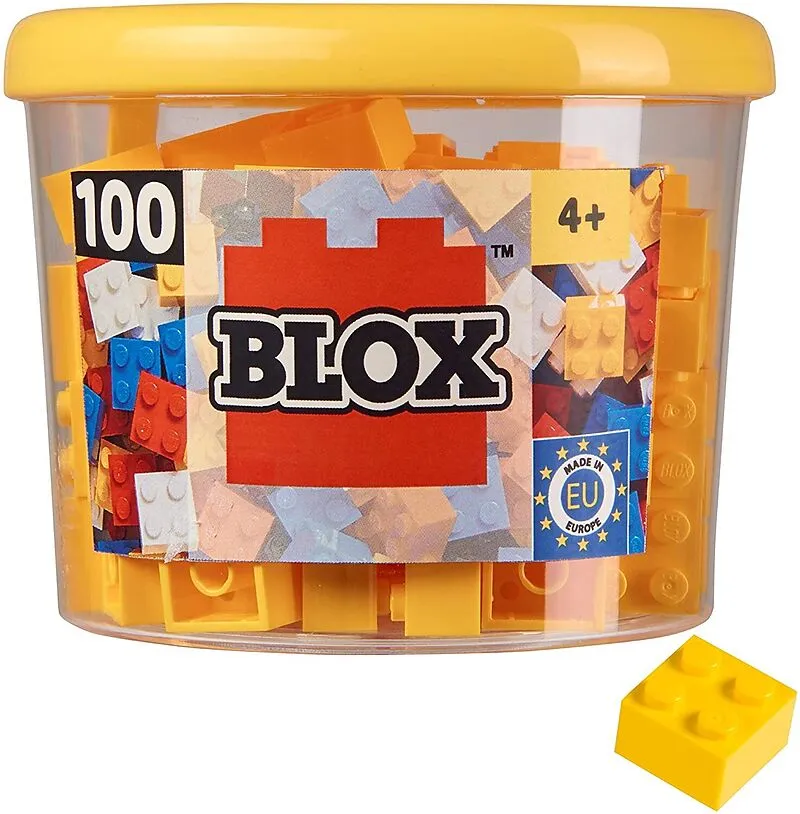 Blox 100 gelbe Steine in Dose: Mit den Blox Vierersteinen von Simba Toys lassen sich die tollsten Bauwerke und Fantasieobjekte kreieren. Der Kreativität der kleinen Baumeister sind hier keine Grenzen gesetzt. In jeder Dose sind 100 Steine enthalten, die sich n...