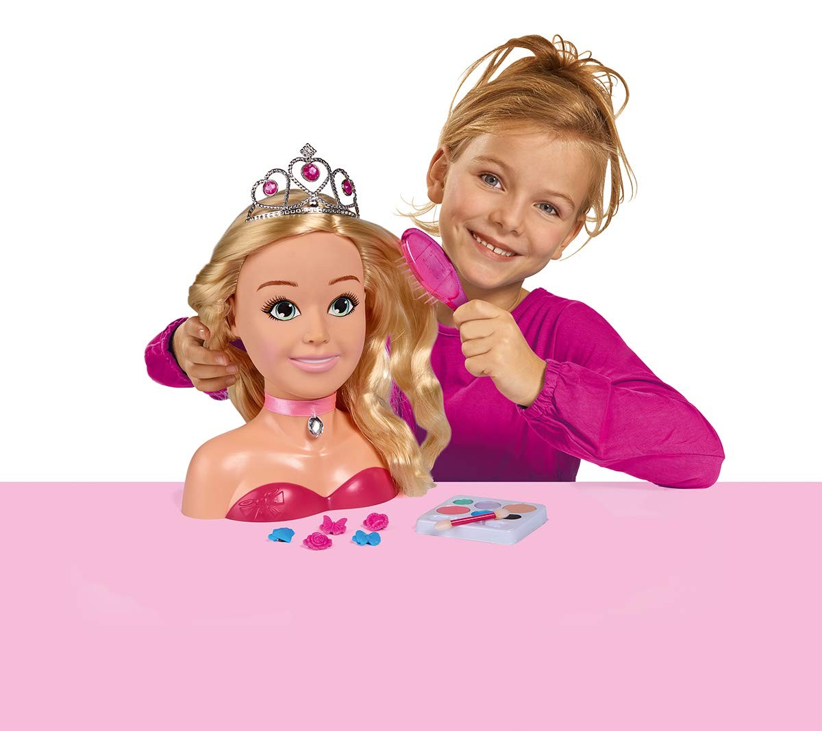 Mit diesem Schmink und Frisierkopf kannst du all deinen Ideen freien Lauf lassen. Mit verschiedenen Haarclips, Haargummis, Bürste und Schminke kannst du eine wahre Prinzessin zaubern. Der krönende Abschluss für das Finish ist die funkelnde Tiara. Sie sieht ein...