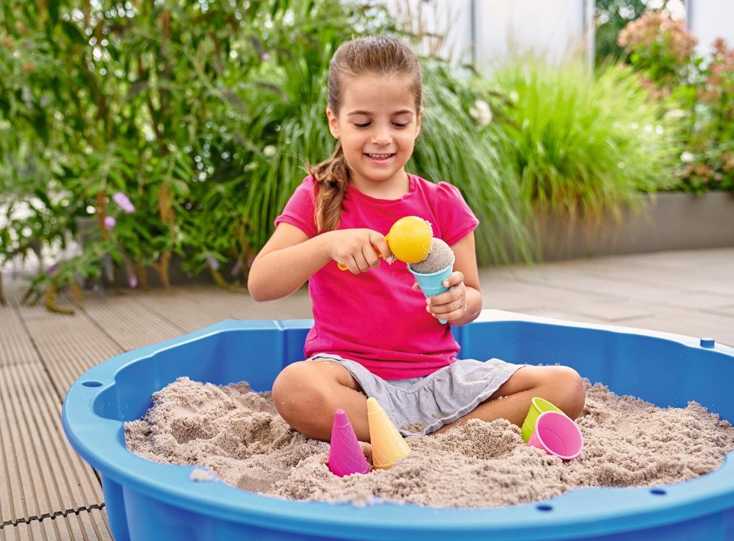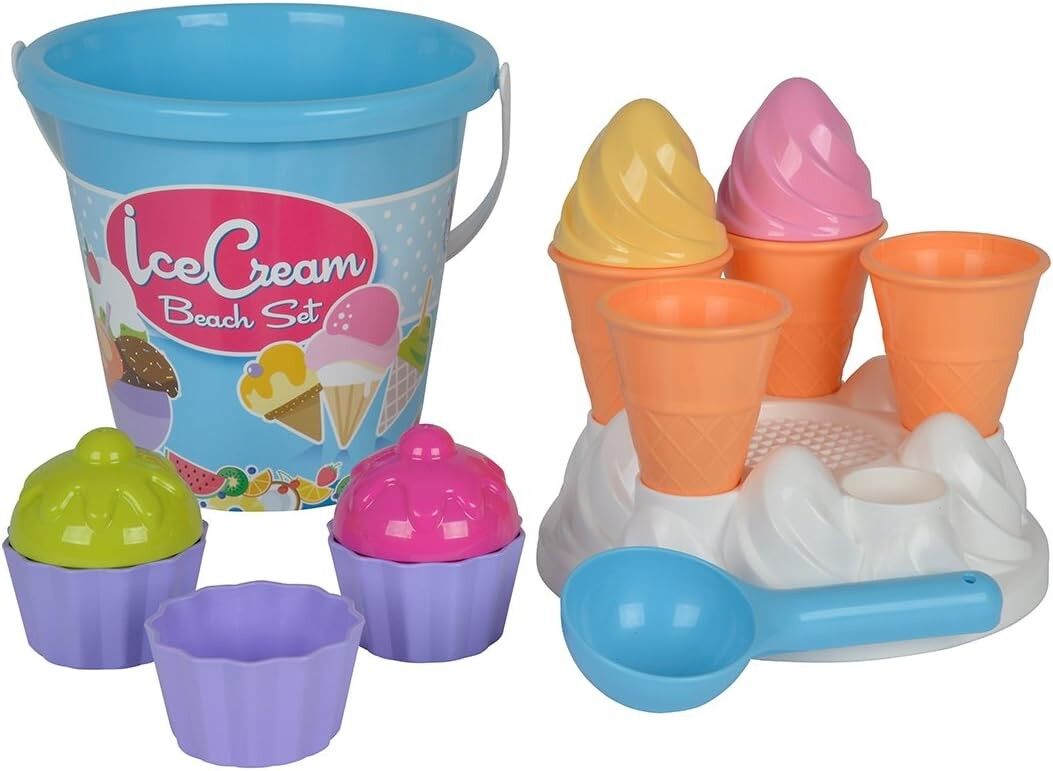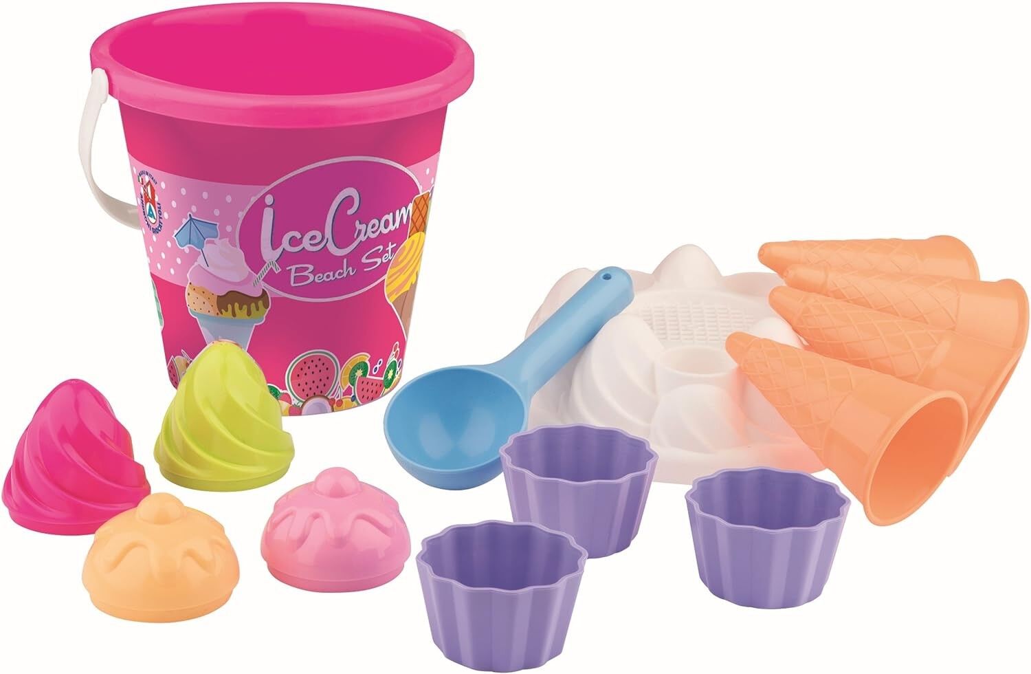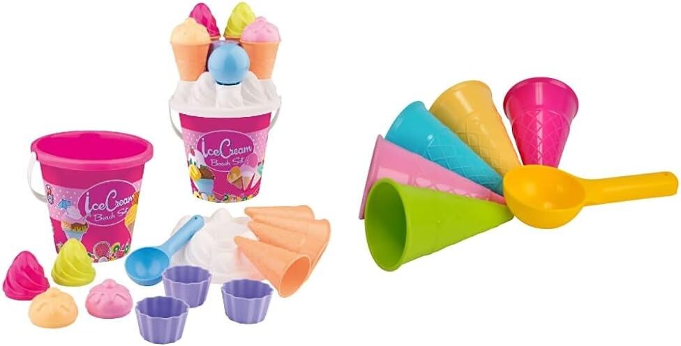 Mit dem Eimerset kann man sich tolle Eiskugeln und Cupcakes aus Sand zaubern. Die fertigen Sandeise können dann ganz praktisch in die Öffnungen auf dem Eimerdeckel gesteckt und der Kundschaft serviert werden. Für den Spielplatz und mehr - ein Teil der Artikel ...