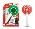 25 cm große Polizeikelle mit Lichtfunktion Vorderseite: Rotes Licht zum Stoppen Rückseite: Grünes Licht für Weiterfahrt Batterien 2 x 1,5V R6 sind enthalten Altersempfehlung: 3+ Jahre