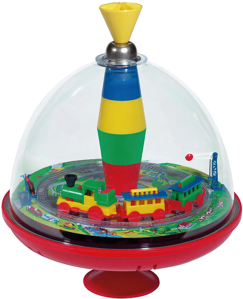Spielzeug - Klassiker an die man sich mit Freude erinnert. Dieser tolle Kreisel von Bolz begeistert garantiert Jung und Alt. Wird er gedreht, dann fährt der Zug über die Schienen und durch den eingebauten Sound- Chip macht er realistische Geräusche, welche Kin...