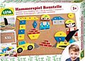 Farbenfrohe Motive nach abgebildeter Vorlage oder eigener Fantasie gestalten. Inhalt: 64 bunte Plättchen auf 7 Formen, 8 Sonderformen Baustelle, Hammer und Nägel sowie Korkplatte: 28 x 19,5 cm. Fördert die Kreativität und Motorik.