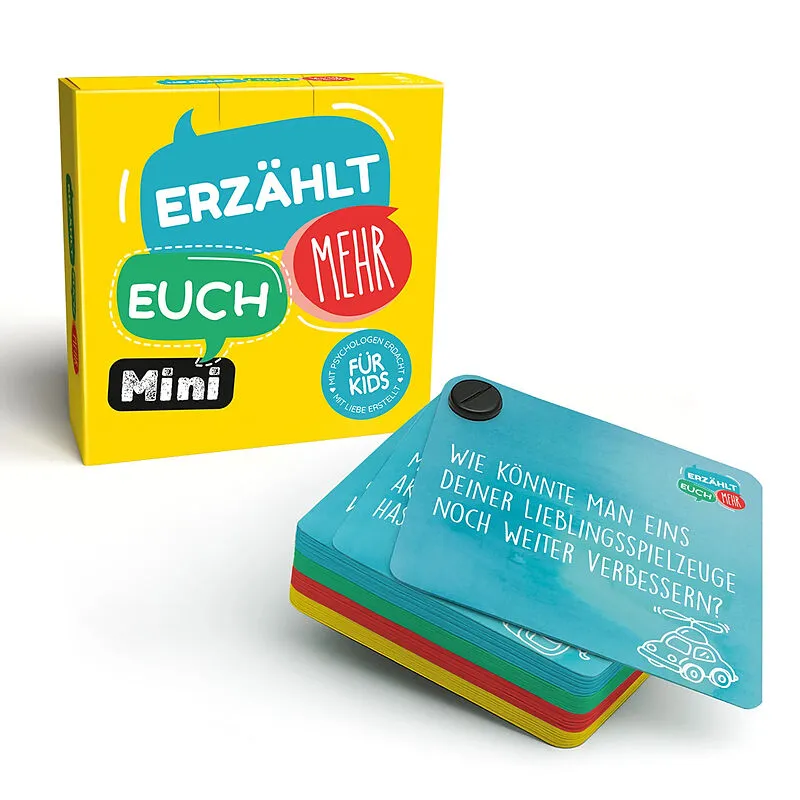 Erzählt euch mehr Kids bringt Familien auf besondere Weise miteinander ins Gespräch. Mit altersgerechten Fragen entdecken Eltern und Kinder neue Seiten aneinander und wachsen spielerisch näher zusammen. Die Fragen sind mal lustig, mal nachdenklich, mal voller ...