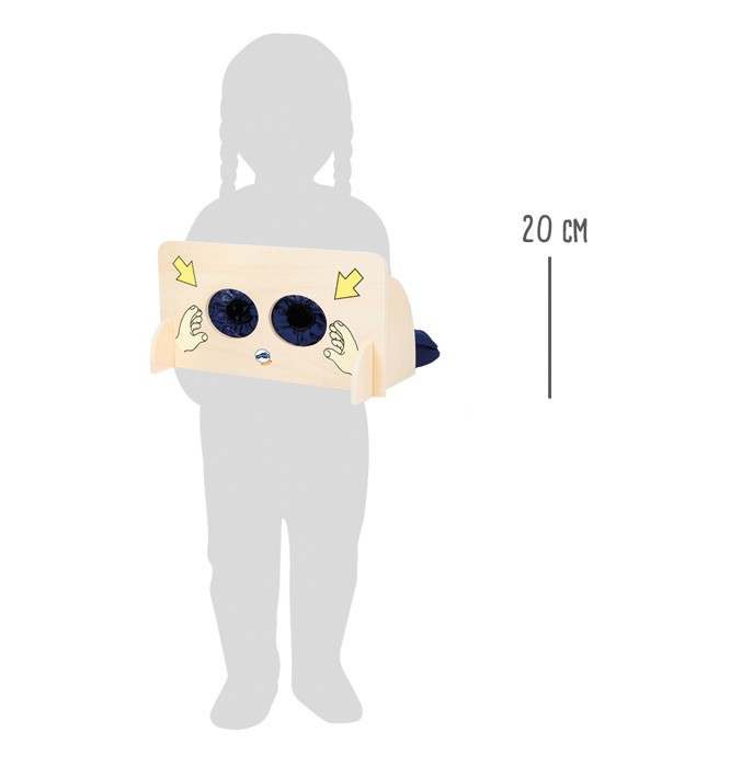 Die Sinne spannend entdecken! An der Wand aus stabilem Schichtholz werden verschiedene Objekte in den Textilbeutel mit Reißverschluss gelegt. Nun greifen die Kinderhände hinein und versuchen zu erkennen, worum es sich dabei handelt! - Sinnesspiel Fühlwand aus ...